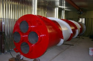 Колонные дымовые трубы представляют собою конструкцию, состоящую из нескольких отделов: наружная несущая обечайка, дымовые трубы и, подходящие к ним, газоходы. Зачастую на одном объекте устанавливают от 1 до 5 дымоходных труб. Главная задача колонных дымовых труб –это отвод продуктов сгорания. В зависимости от условий работы колонные дымовые трубы имеют различные габариты: диаметр и высоту. Конструкция труб подразумевает наличие специального термоизоляционного слоя, который призван защитить конструкцию от образования и скопления конденсата различных веществ. Вас могут заинтересовать мачтовые дымовые трубы.